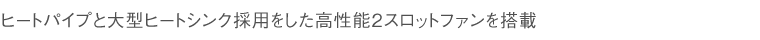 薄型1スロットタイプファンを採用することにより、省スペース型PCにおいてグラフィックスボードを利用する場合に1スロットサイズでの運用が可能です。さらにNVIDIA推奨設定のファン回転数により高負荷時でも温度上昇を抑え安定した動作を実現します