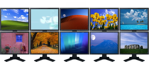 マルチディスプレイ時、それぞれのモニタで色数、解像度、リフレッシュレートの設定が変更できます。この機能により、別々の性能を持ったモニタもフルに活用することができます。