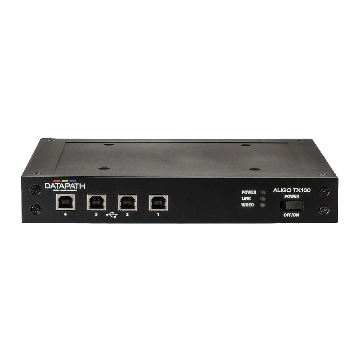 Aligo TX100は、10Gと1Gネットワークの同時活用を可能にするAVoIPトランスミッターです。1系統の4Kまたは4系統のFHD入力を自在に配信し、低遅延KVM制御やAES暗号化、ゲンロック同期にも対応。