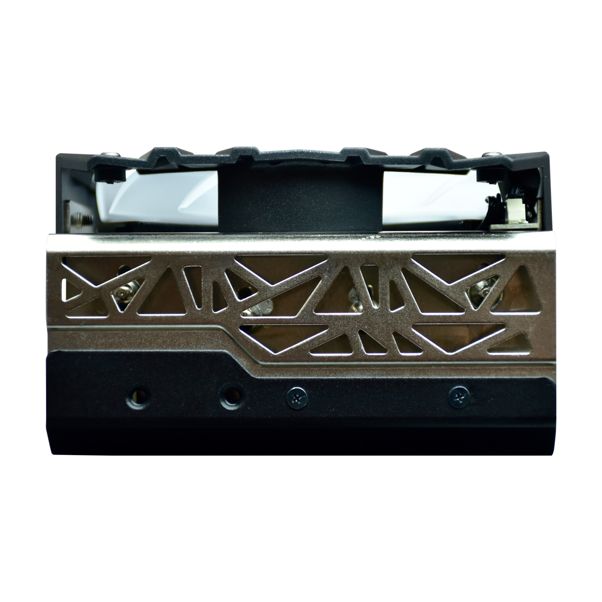 ロゴはもちろんThrough Flow Cooling Systemの冷却風放出口もデザインの一部とすることでユニークな外観と機能性を両立しています。
