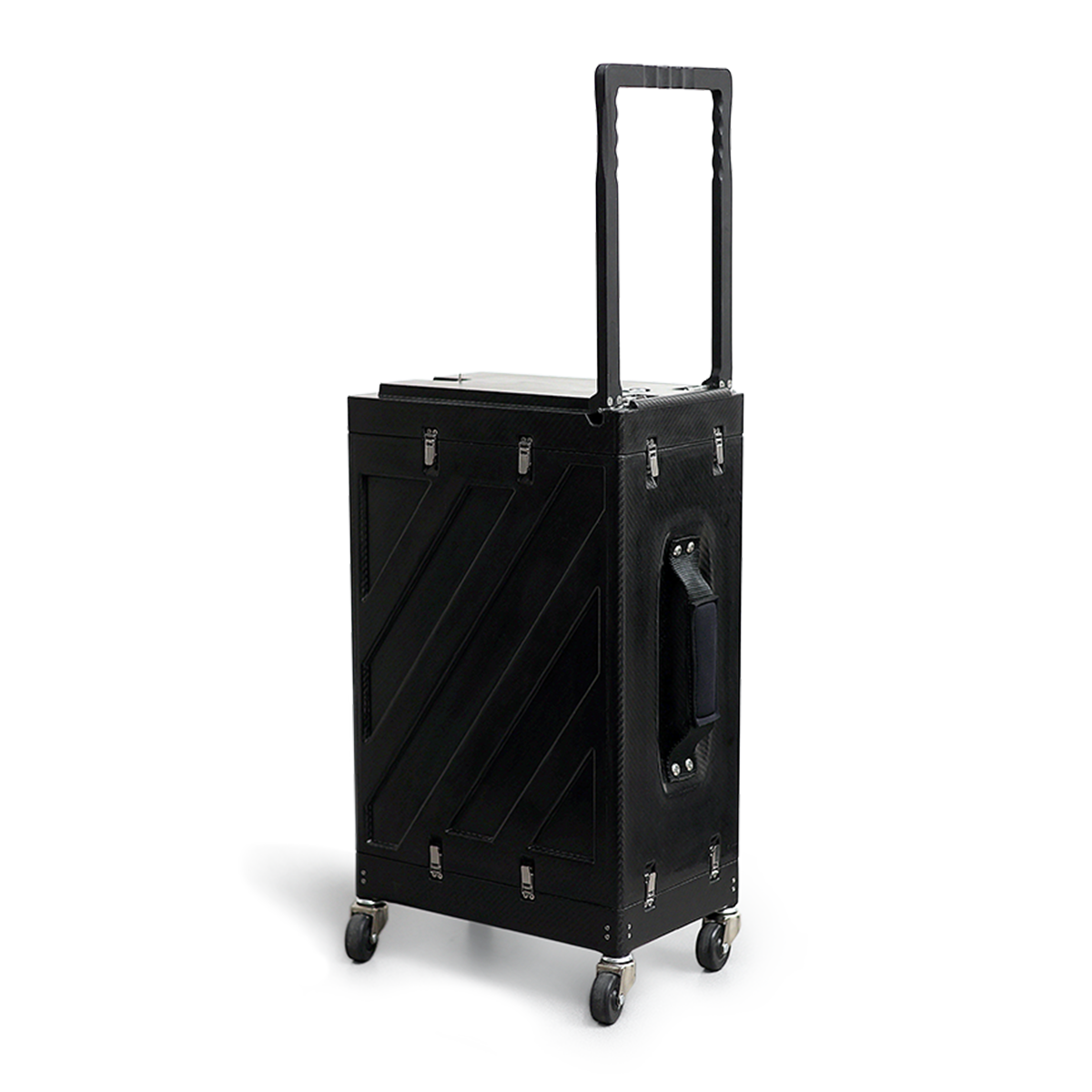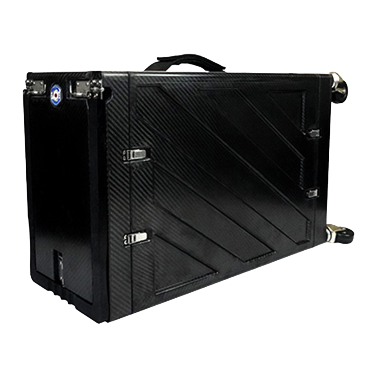 可搬性:堅牢なカーボンファイバー筐体に、格納式ハンドルとキャスターを搭載。