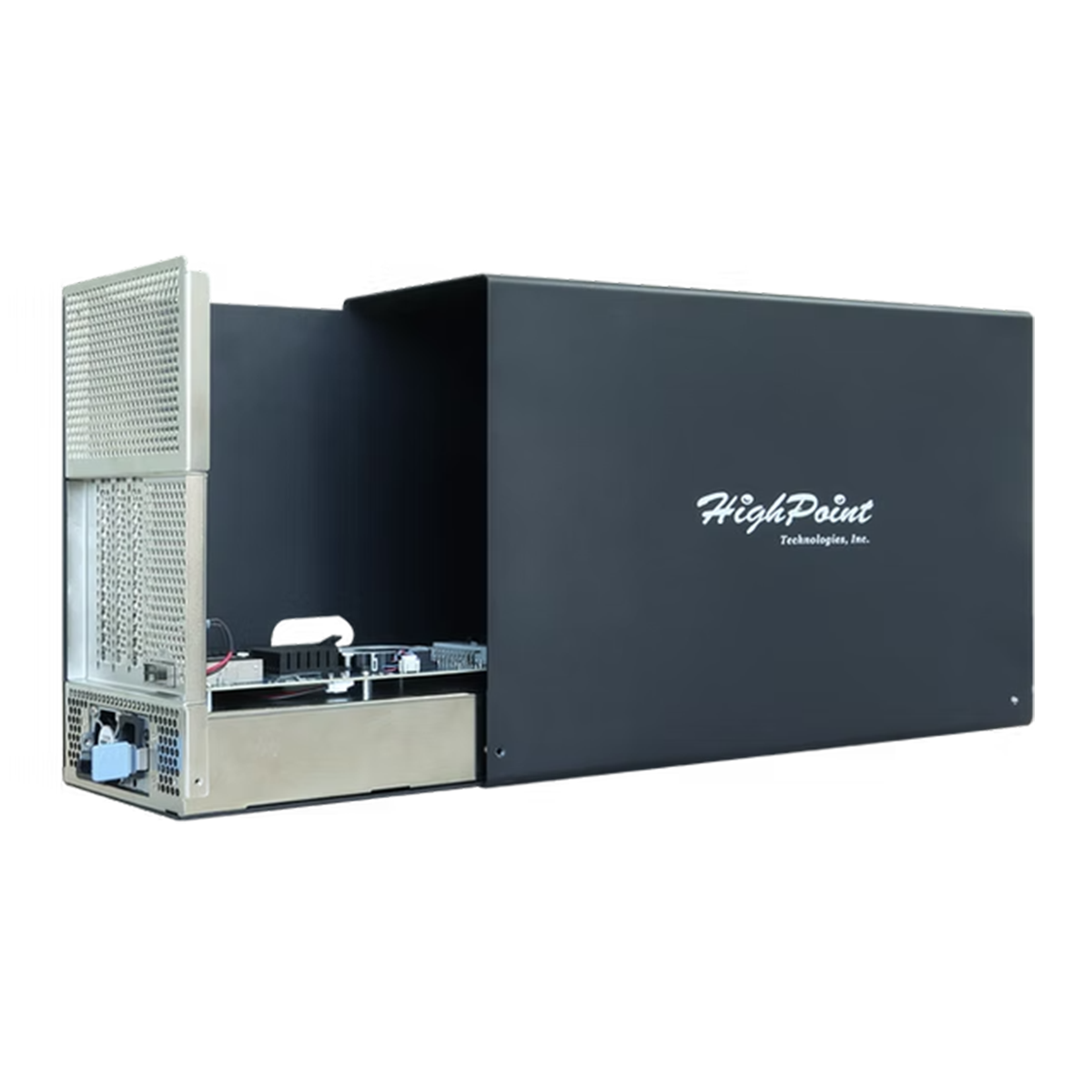 HighPoint製外部PCIeスイッチアダプタと組み合わせることで、RocketStor 8631Dは真の「ホスト・トゥ・デバイス」PCIe Gen5 x16パフォーマンスを実現します。これにより、科学的モデリング、リアルタイム分析、高解像度レンダリングといった極めて負荷の高いワークロードにおいて、その真価を発揮します。