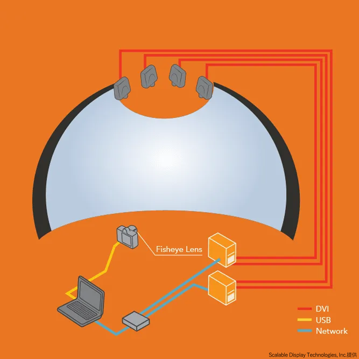Scalable Display Manager (SDM) は複数プロジェクター環境でのワープ/ブレンディングを演算によって処理し、演算結果を並列化したPCおよび複数のワープ用機器への配分を行うソフトウェアです。